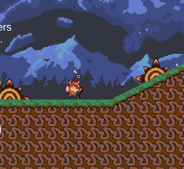 PIP is a casual 2D Platformer, with a retro pixel art theme. Easy controls, letting users navigate around the levels, collecting food and getting back home to his family while avoiding traps that the hunters have laid out, while discovering hidden areas.
